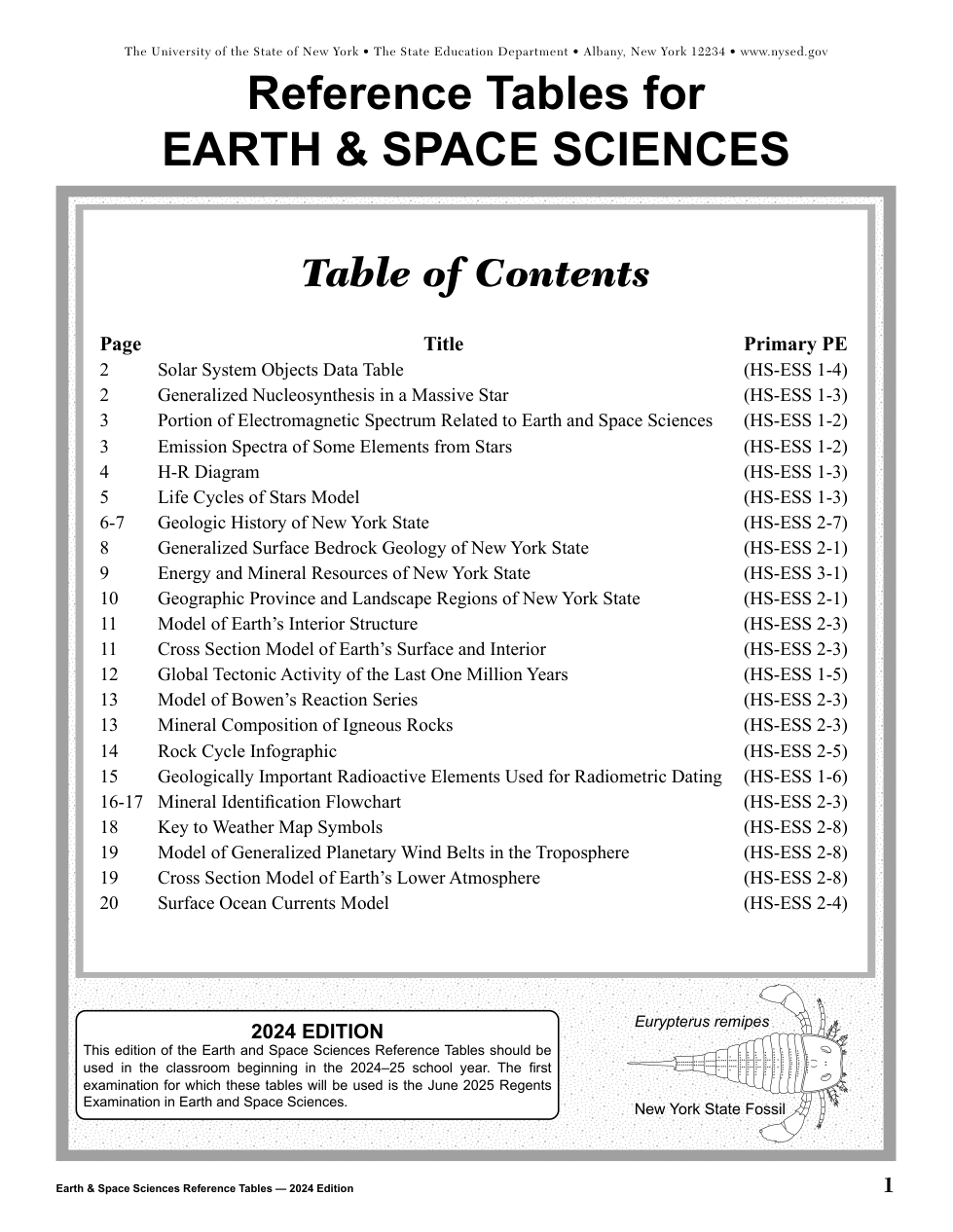 2026 (Jan.): NY Regents - Earth and Space Sciences