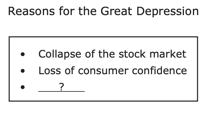 Use the drop-down menu to select the final bullet of the list of Reasons for the Great Depression.