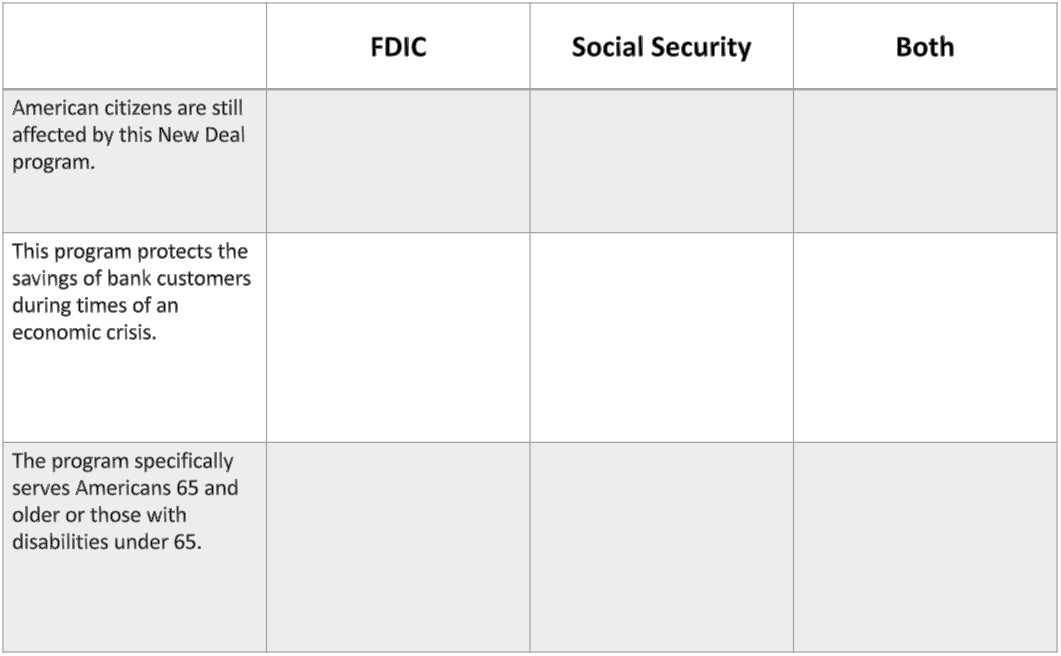 What are the characteristics of the FDIC and the Social Security programs from the New Deal?