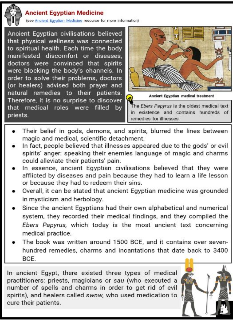 In ancient Egypt, there existed three types of medical practitioners, priests, magicians, or sau.