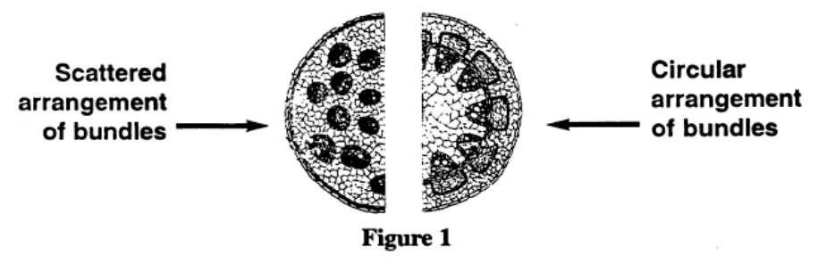 Is the stem arrangement scattered or circular? Compare to the chart above.
