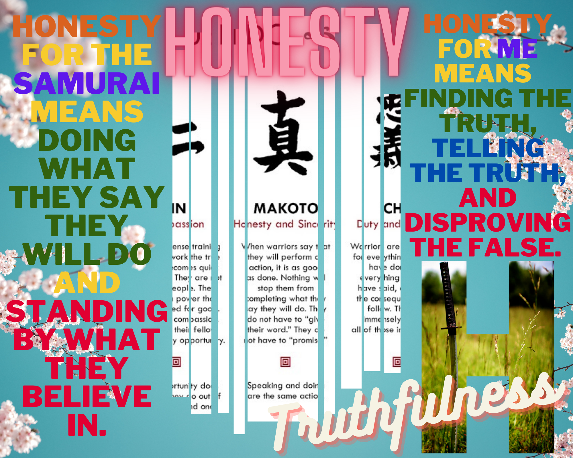 4 - Created a one pager on a principle of Bushido, explain what the principle means to the Samurai, explain what the principle means to you, title appropriately, and have plenty of colors, photos, and shapes.