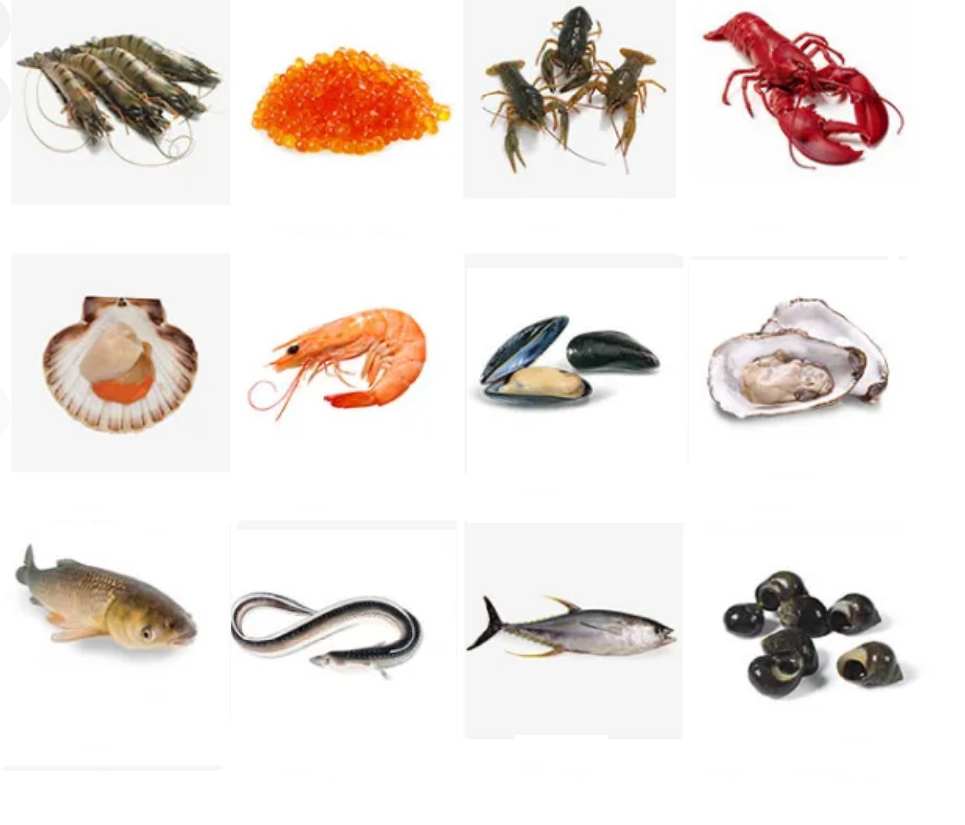 Sign the names of sea creatures that can be found on the restaurant menu.