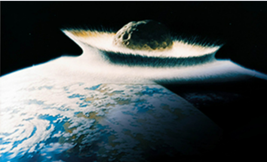 crater: a large, circular _______ in the surface of a planet or other body in space usually formed when two bodies in space collide