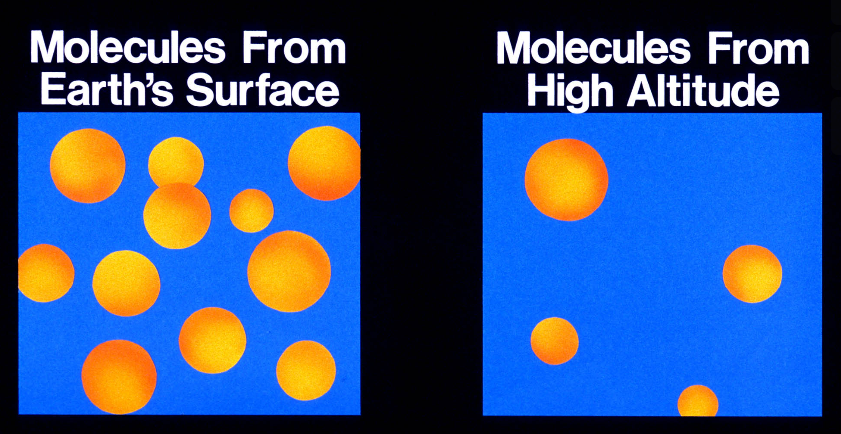 The air molecules are more spread out as one goes higher. So, air pressure _______ with height.