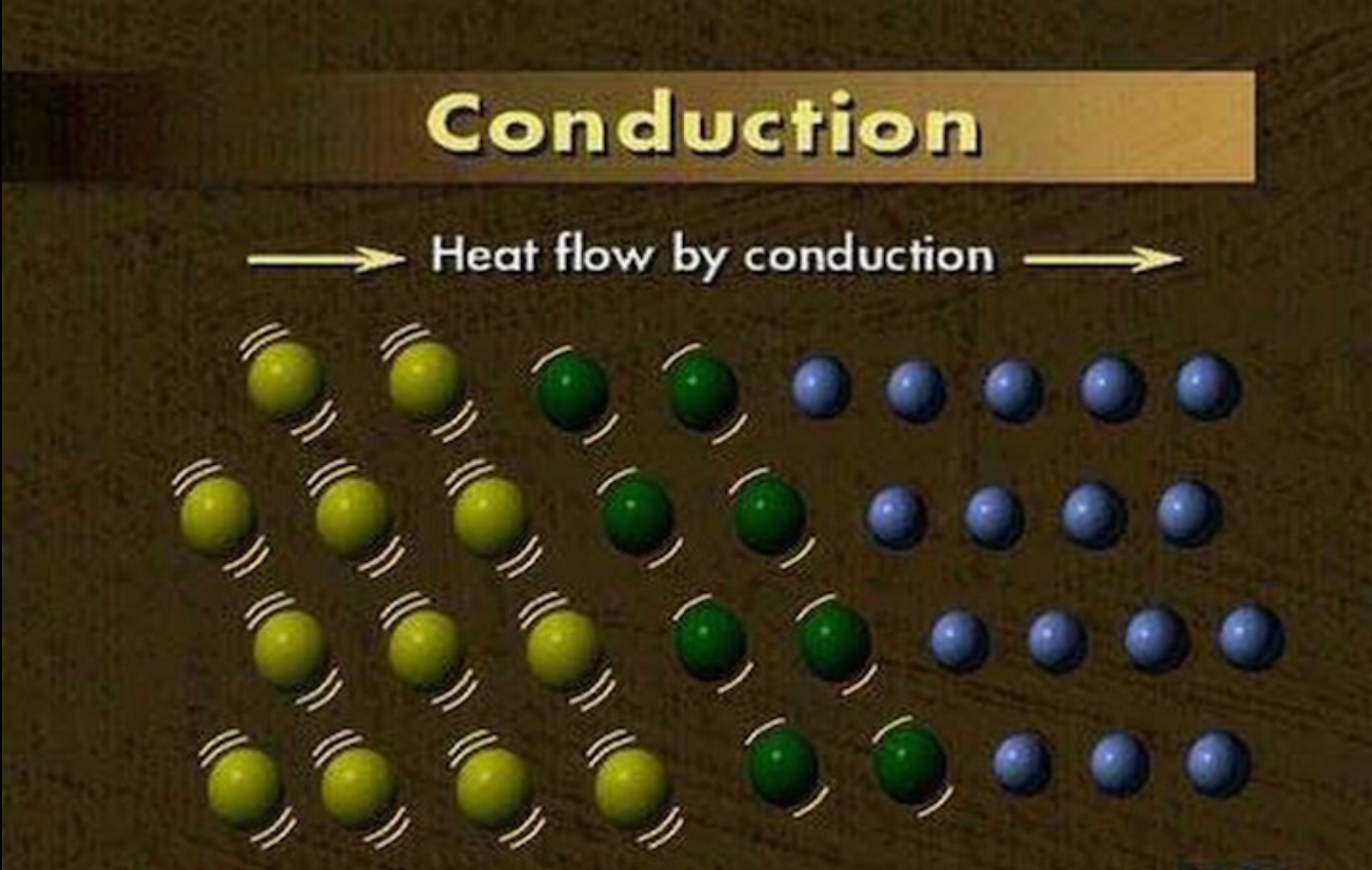 In a solid, heat is conducted as the _______ gradually spread to the right.