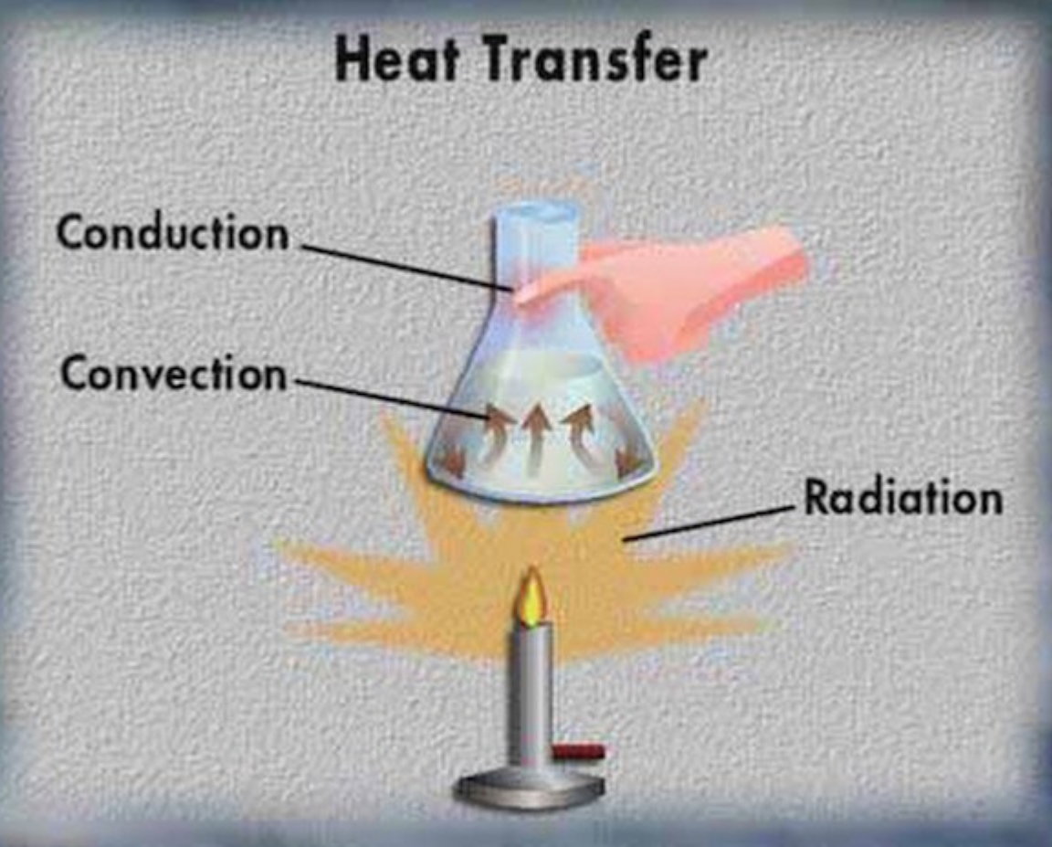 Heat energy can be transferred in several ways. Radiation is the transfer of energy via _______. Conduction is the transfer of molecular heat energy via _______. Convection is the transfer of heat via the _______ .