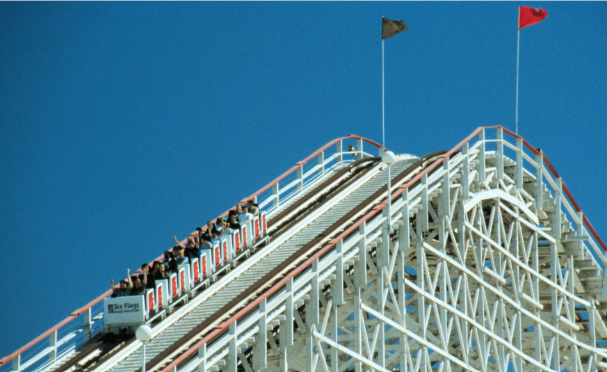 When a roller coaster is at highest position on the slope, it has stored potential energy. As it begins to move down the slope, this stored energy is converted to _______ energy.