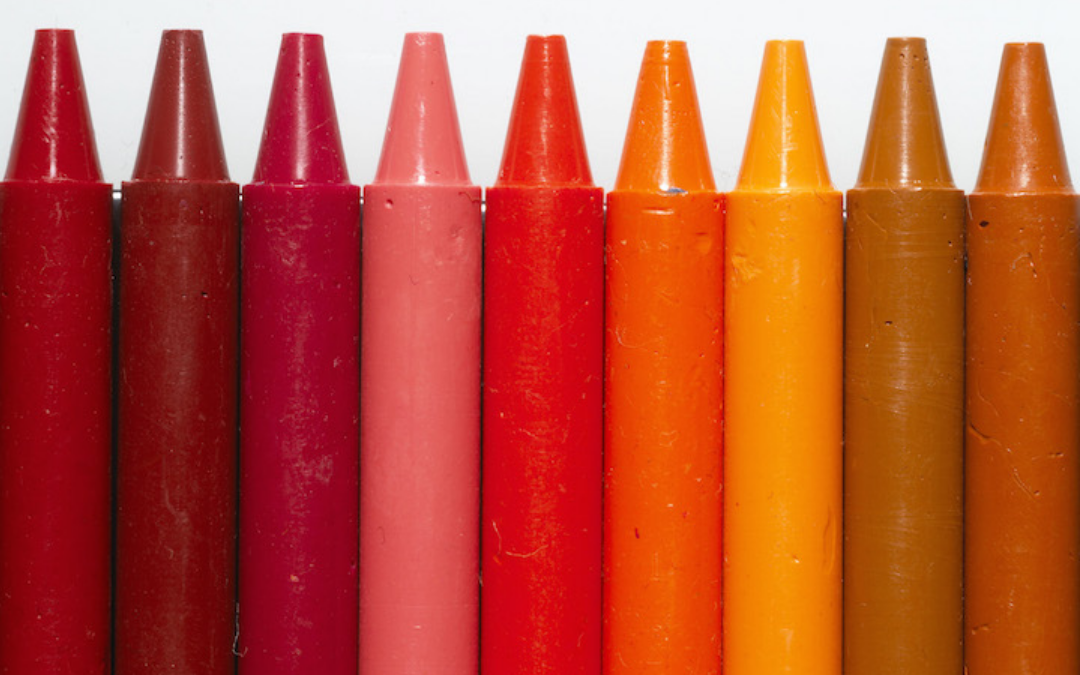 A crayon is a solid. The _______ that make the crayon are very close to each other.