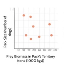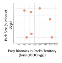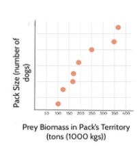 Scientists wondered If the amount of prey in the territory could limit the size of the pack. The graphs below show pack size and prey biomass, a measure of how much food is available. If prey biomass is a limiting factor for African wild dog pack size, which graph represents the relationship?