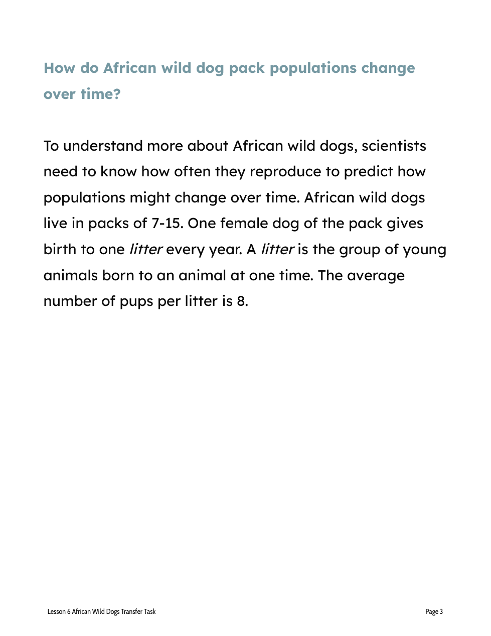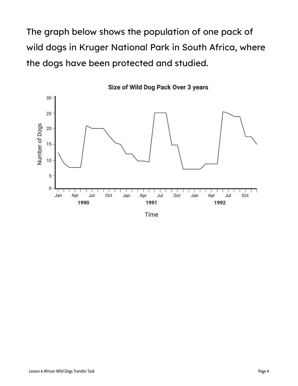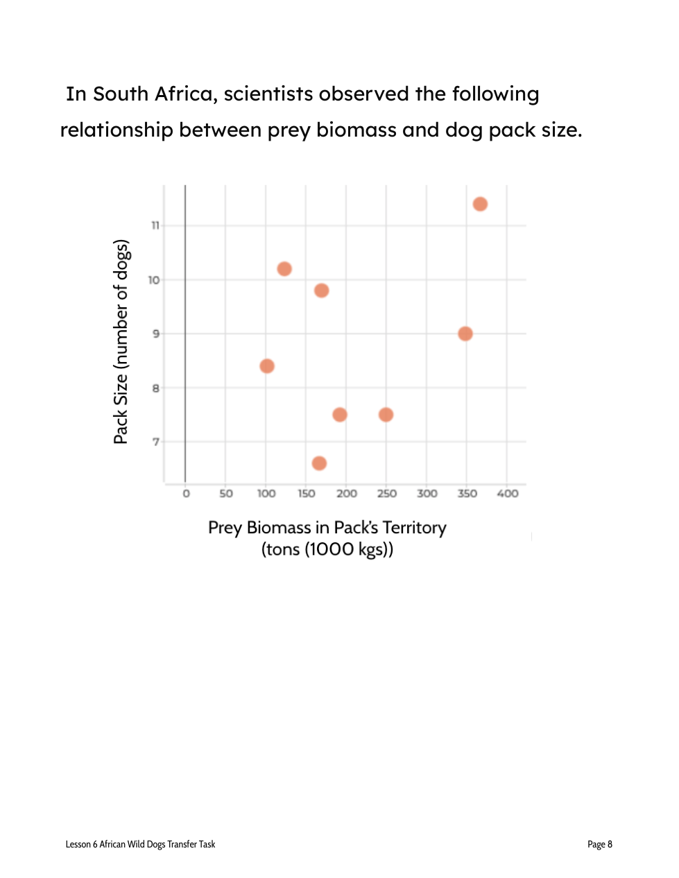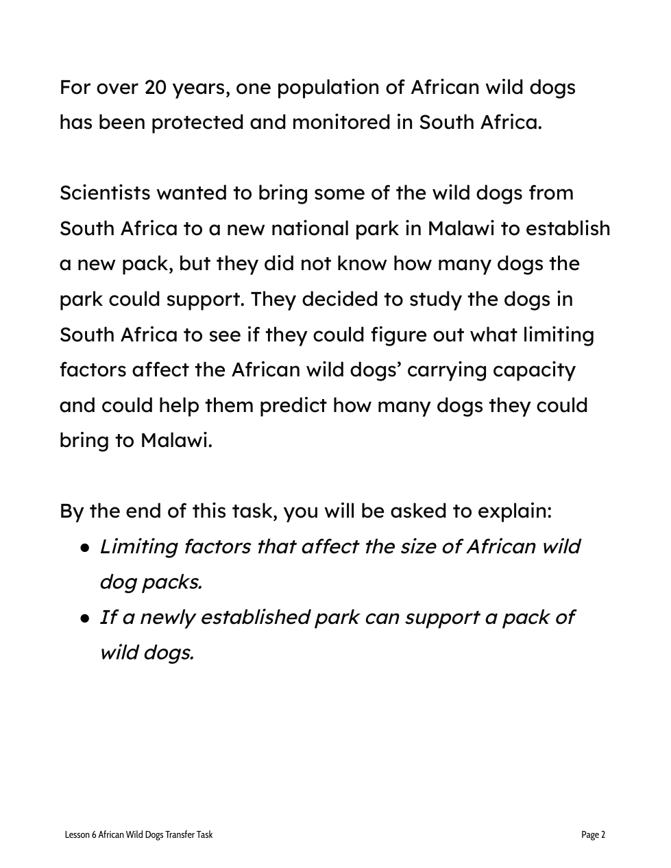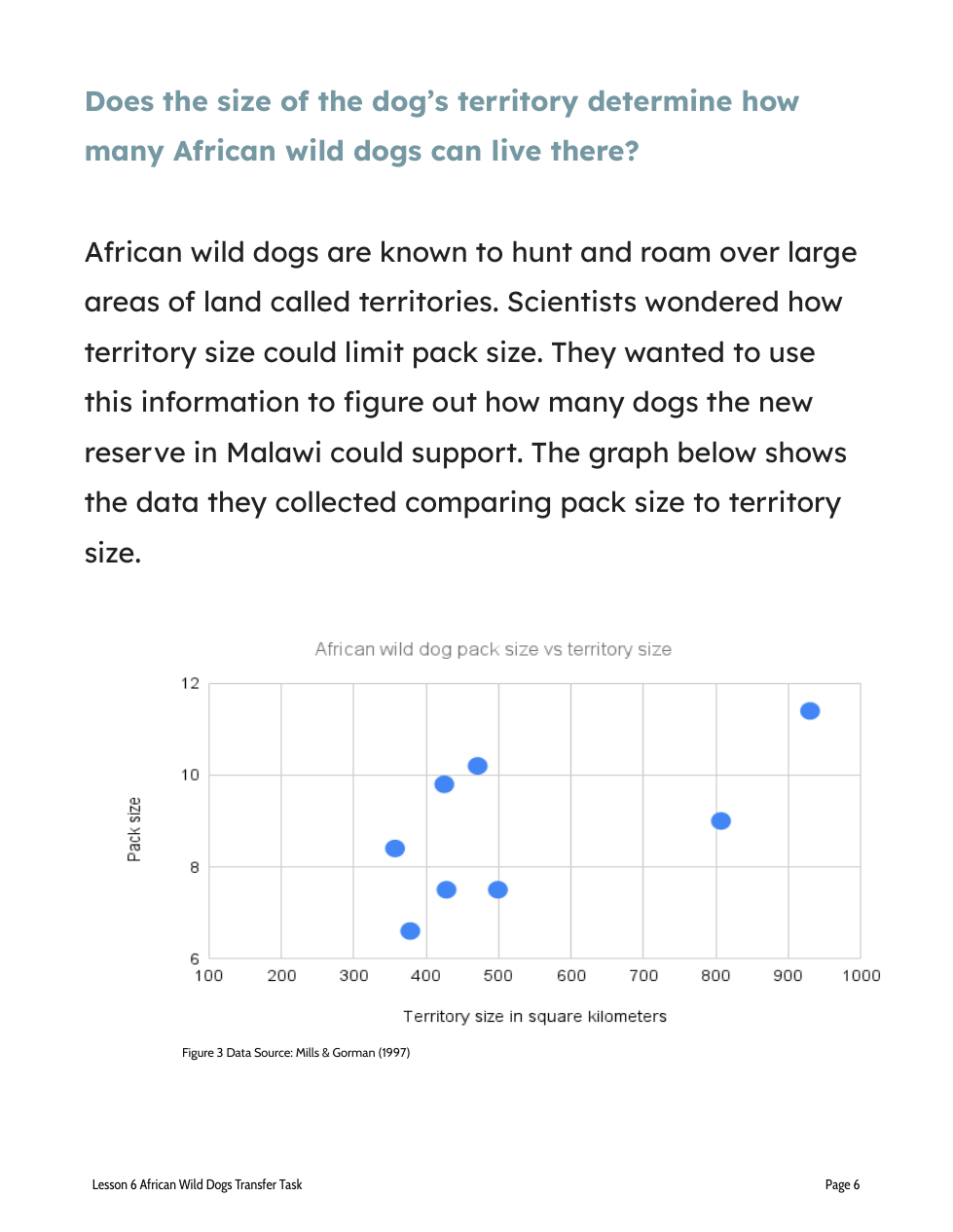 Scientists (this means you) need to figure out how many African wild dogs the reserve park can support by looking at