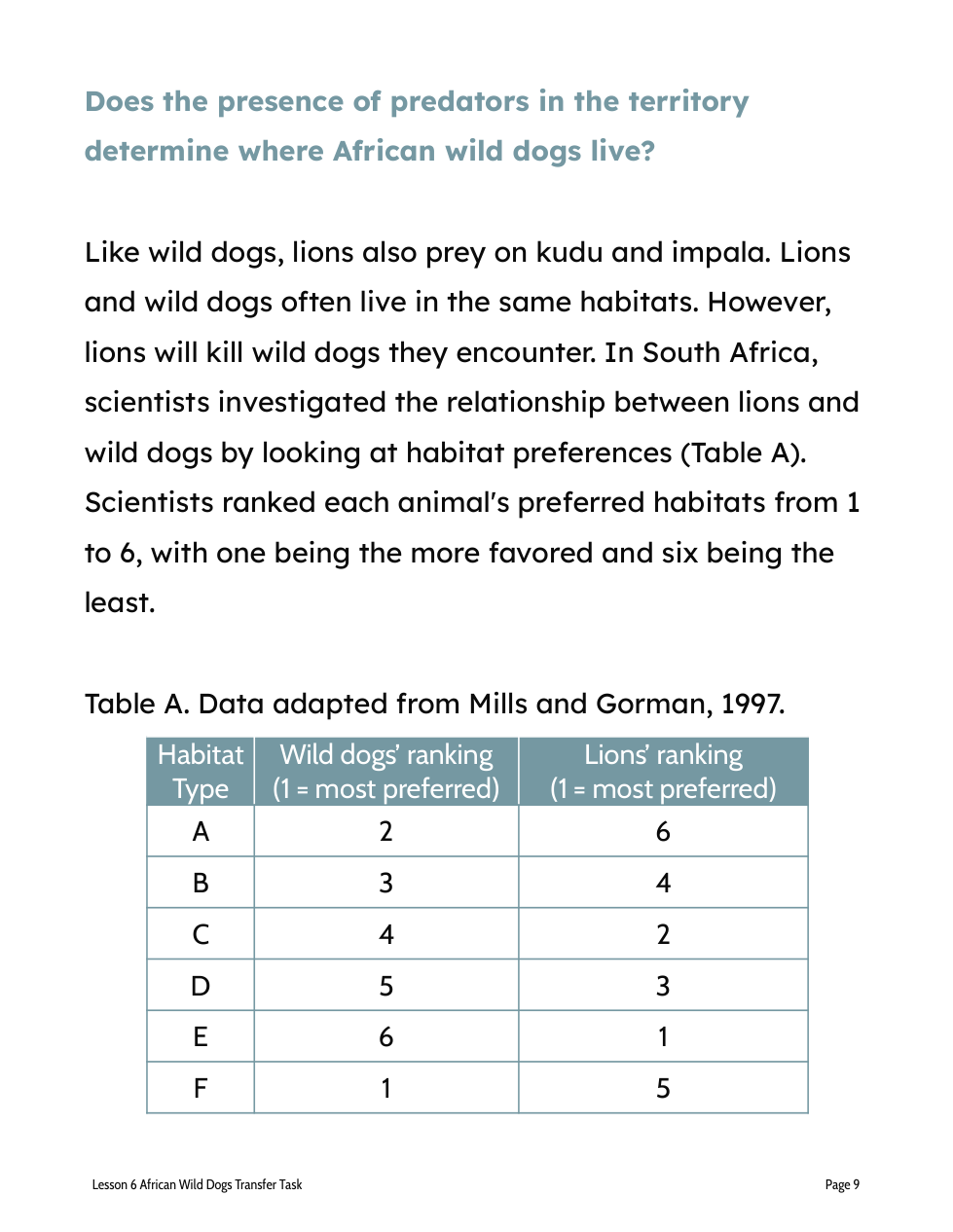 a. Wild dogs and lions prefer the same habitat