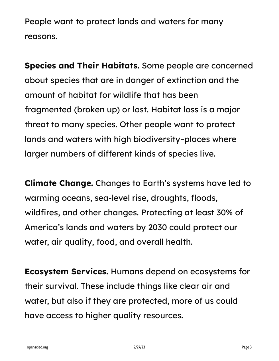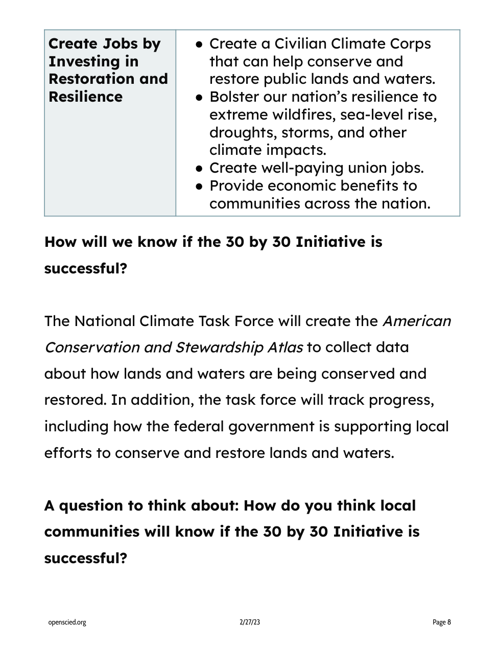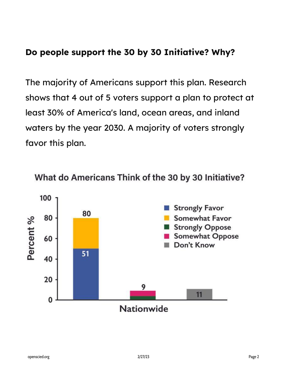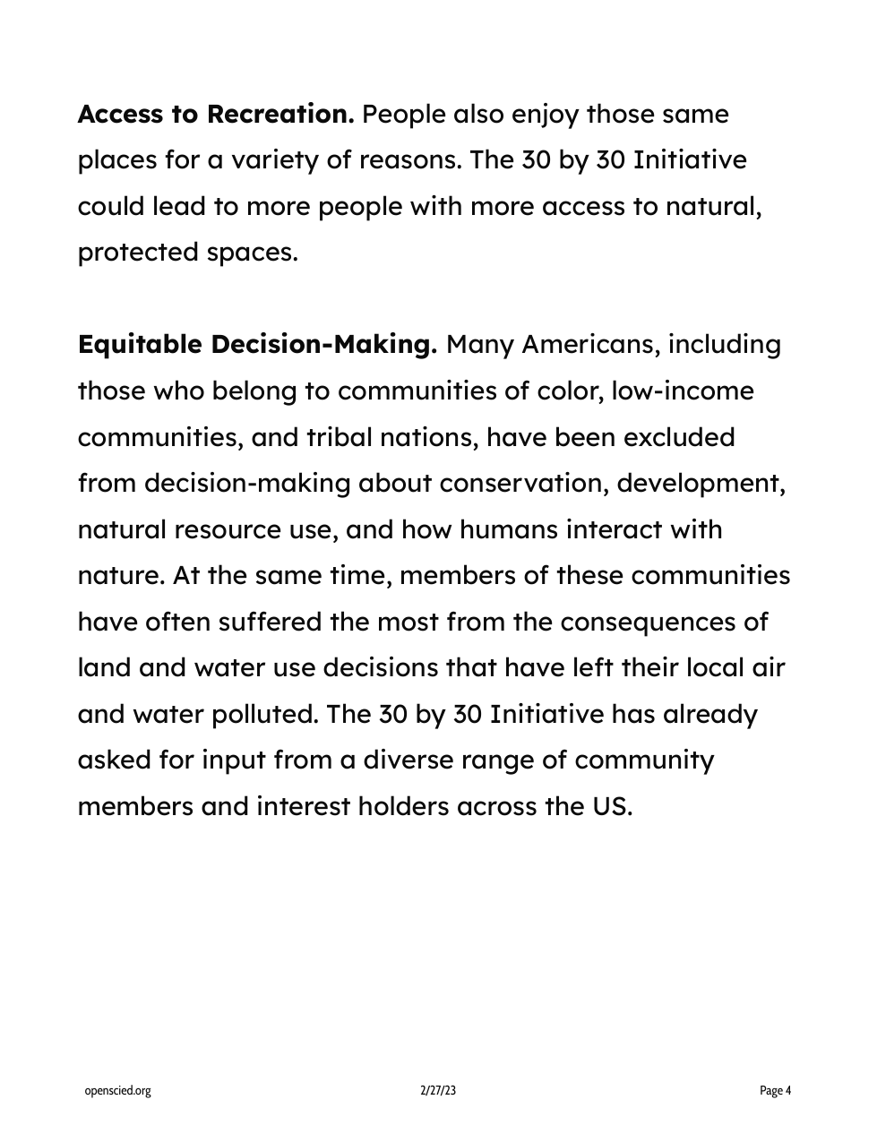 The 30 by 30 initiative could lead to more access to natural protected spaces.