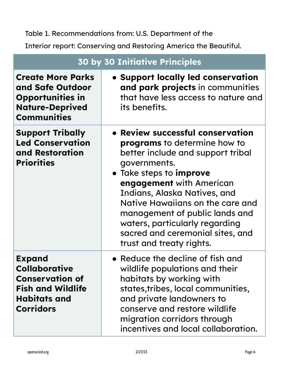 The 30 by 30 initiative has asked for input from a diverse range of community members like low income communities and tribal nations.