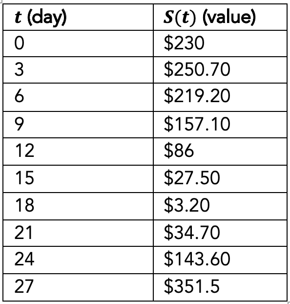 Estimate the first time that the value of the stock starts to decrease.