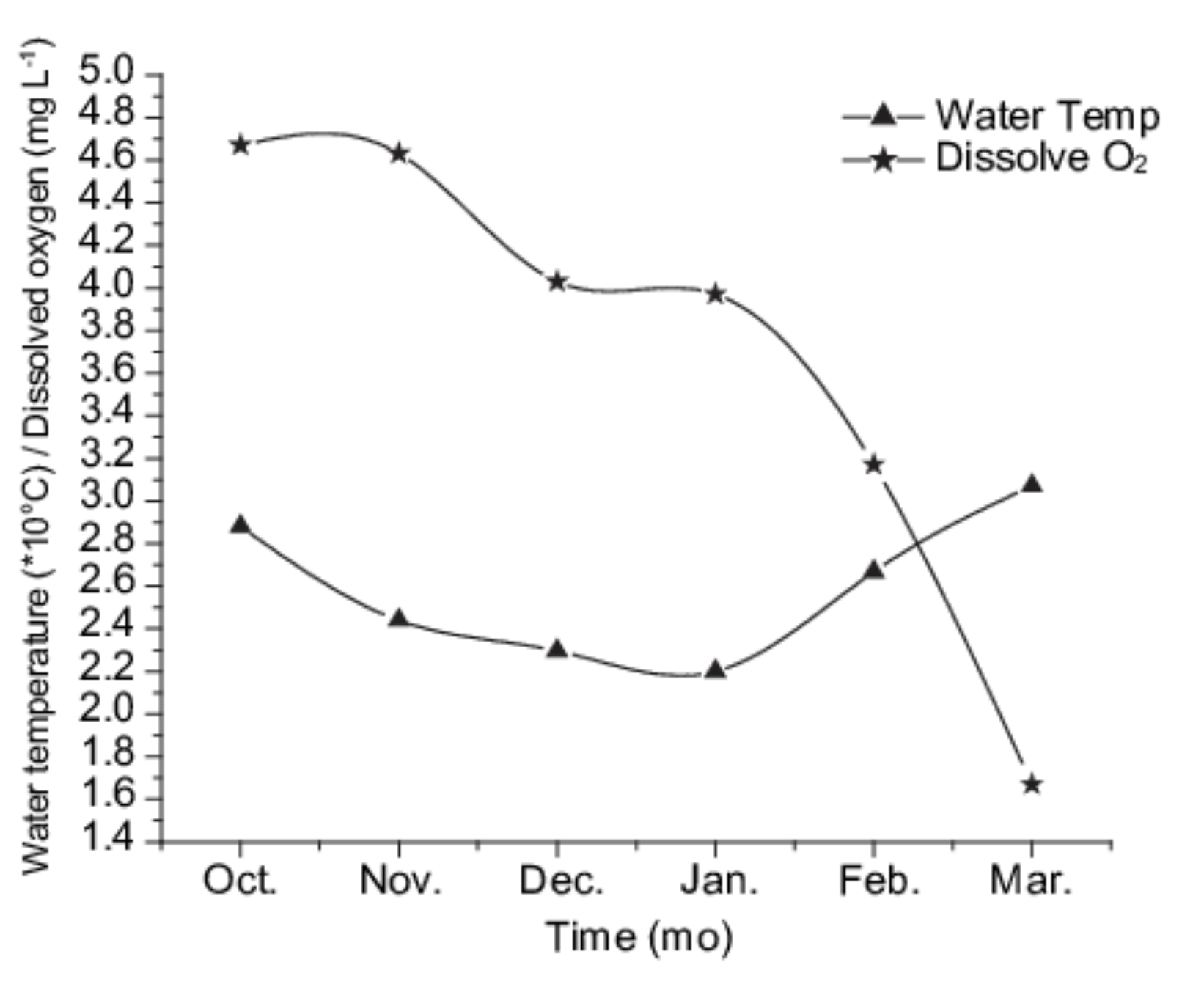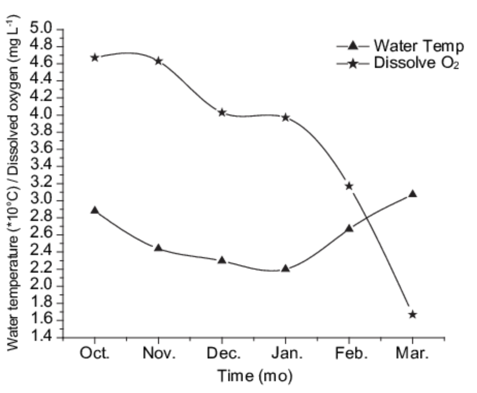 Summarize the relationship between water temperature and dissolved oxygen.