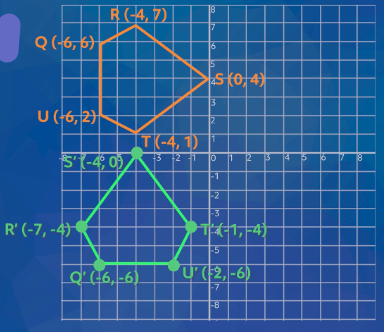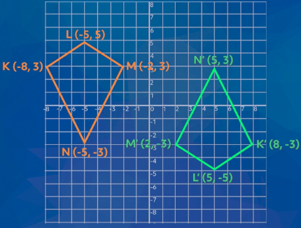 On the coordinate plane, point A (3,−4) is rotated 180° in a counterclockwise direction about the origin to create the rotated point A′. What are the coordinates of A'?