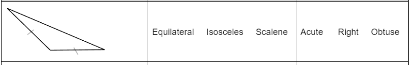 Classify the triangle by its side lengths AND angle measurements. Click the correct names (