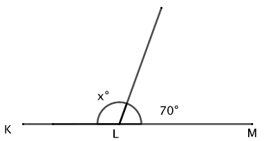 Write an equation, and solve for the measure of ∠x . ∠KLM is a straight angle.