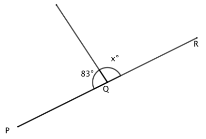 Write an equation, and solve for the measure of ∠x . ∠PQR is a straight angle.