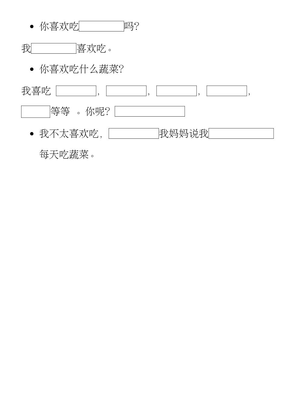 我吃_______ 种蔬菜,🍅_______ 🥦_______ 🥒_______ 🥬_______ 🥔_______ 。