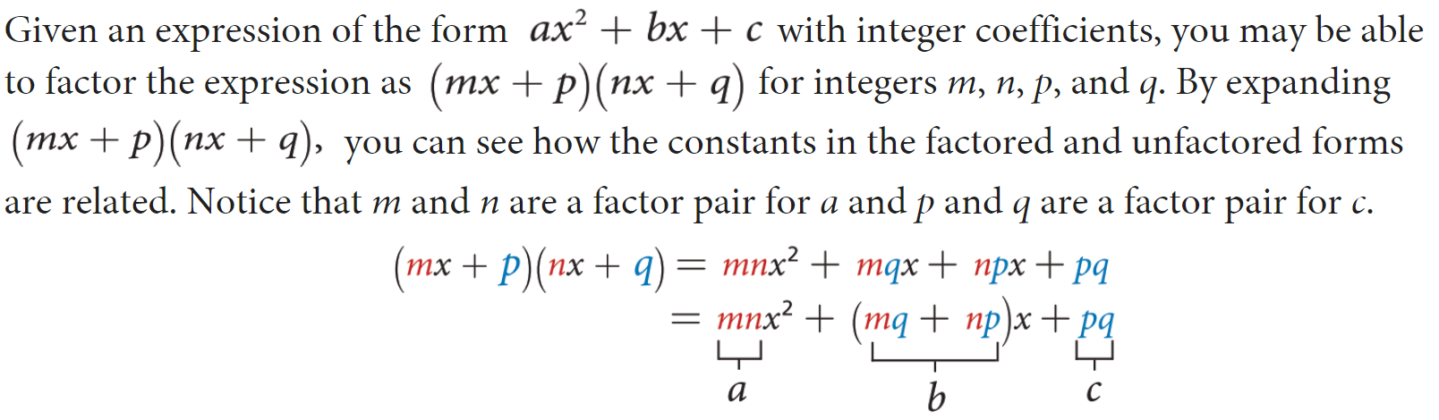 Factoring Quadratic Expressions of the Form ax^2 + bx + c