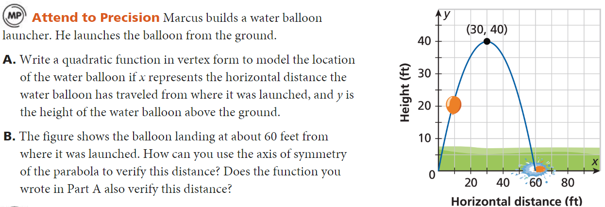 A. What quadratic function, in standard form, models the height of the soccer ball?