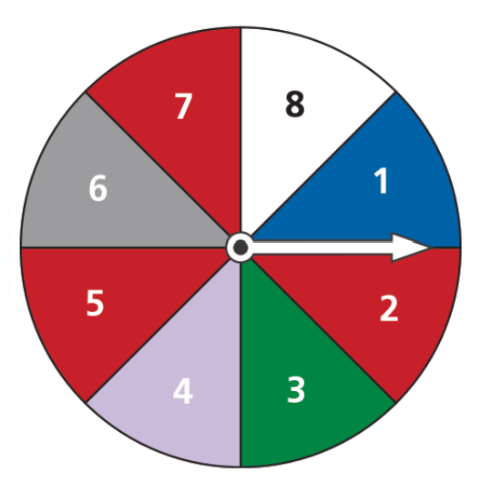 Consider the spinner shown at the right. Describe the pairs of events as mutually exclusive or inclusive.