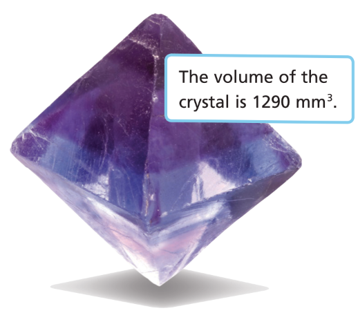 gives the volume (in cubic millimeters) of a regular octahedron as a function of the length of its edge (in millimeters). What is the length of one of the edges of Janet’s fluorite crystal?