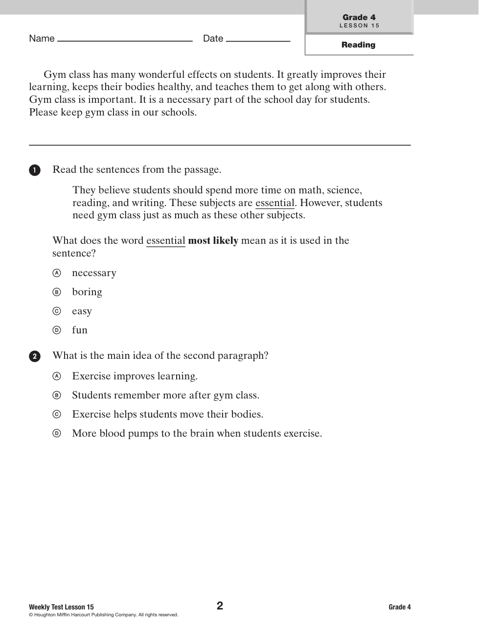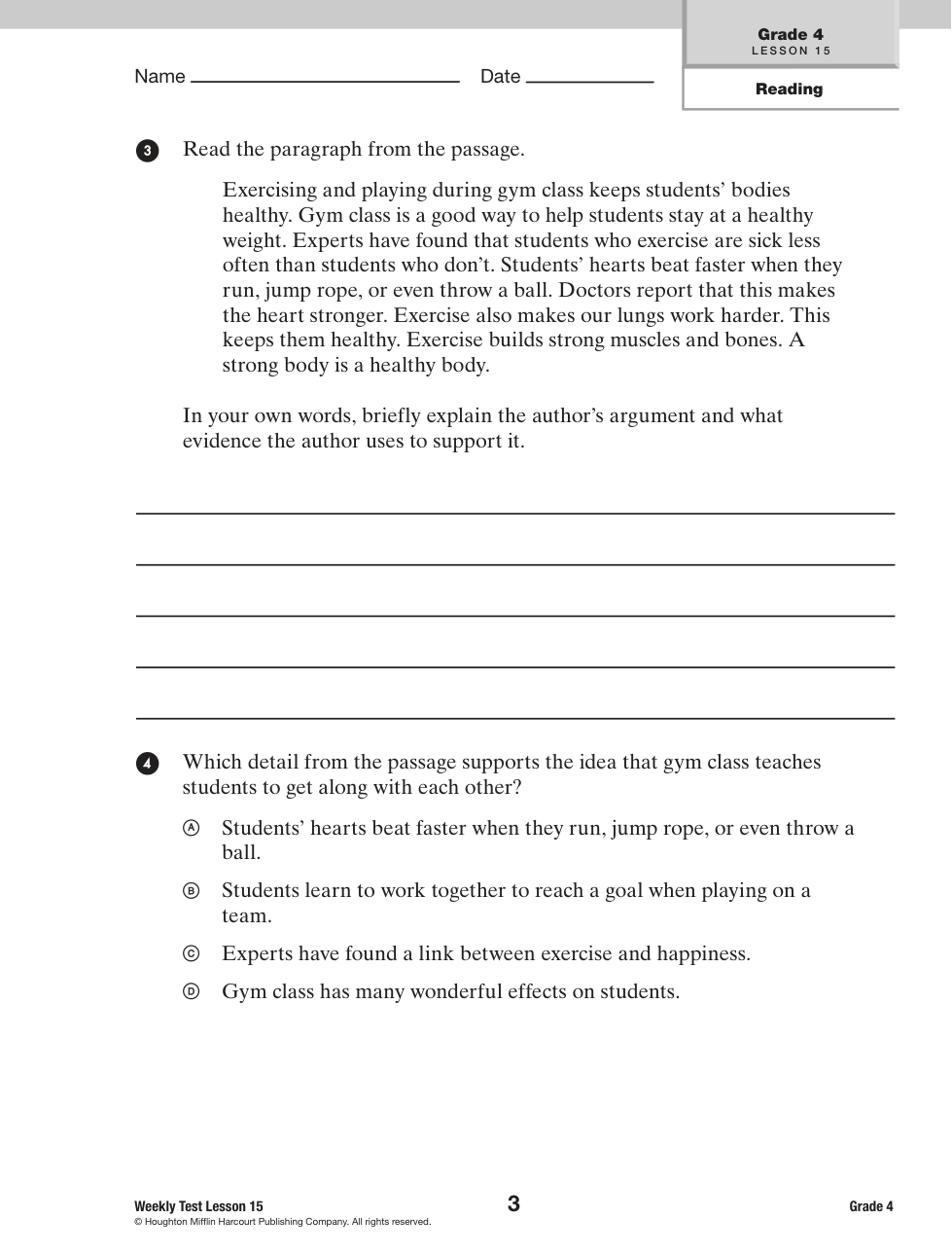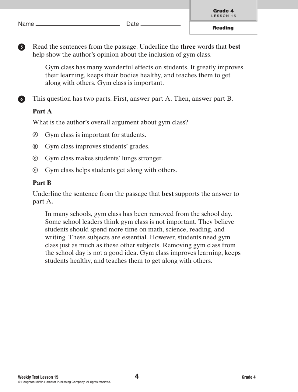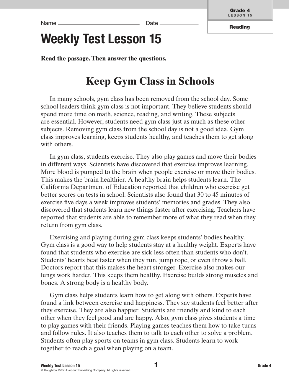 Read the sentences from the passage. Underline the three words that best help show the author’s opinion about the inclusion of gym class.