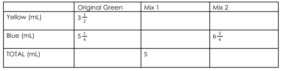 Van Gogh—To make green paint, students mixed yellow paint with blue paint. The table below shows how many yellow and blue drops from a dropper that Eliana and Sisilia used to make the same shade of green paint.