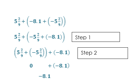 An expression was simplified. What property of operations was used to go from Step 1 to Step 2?