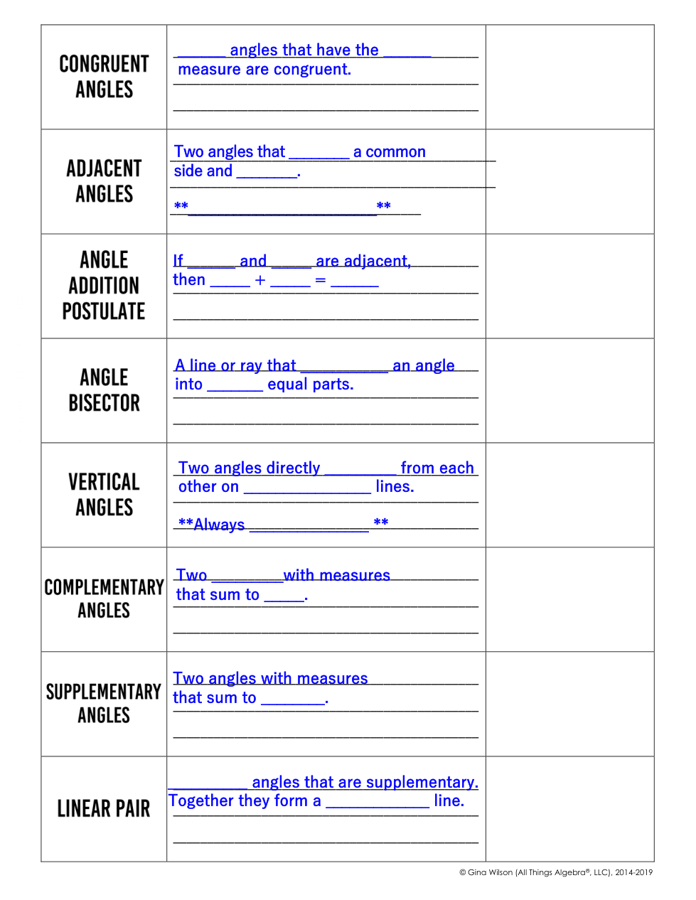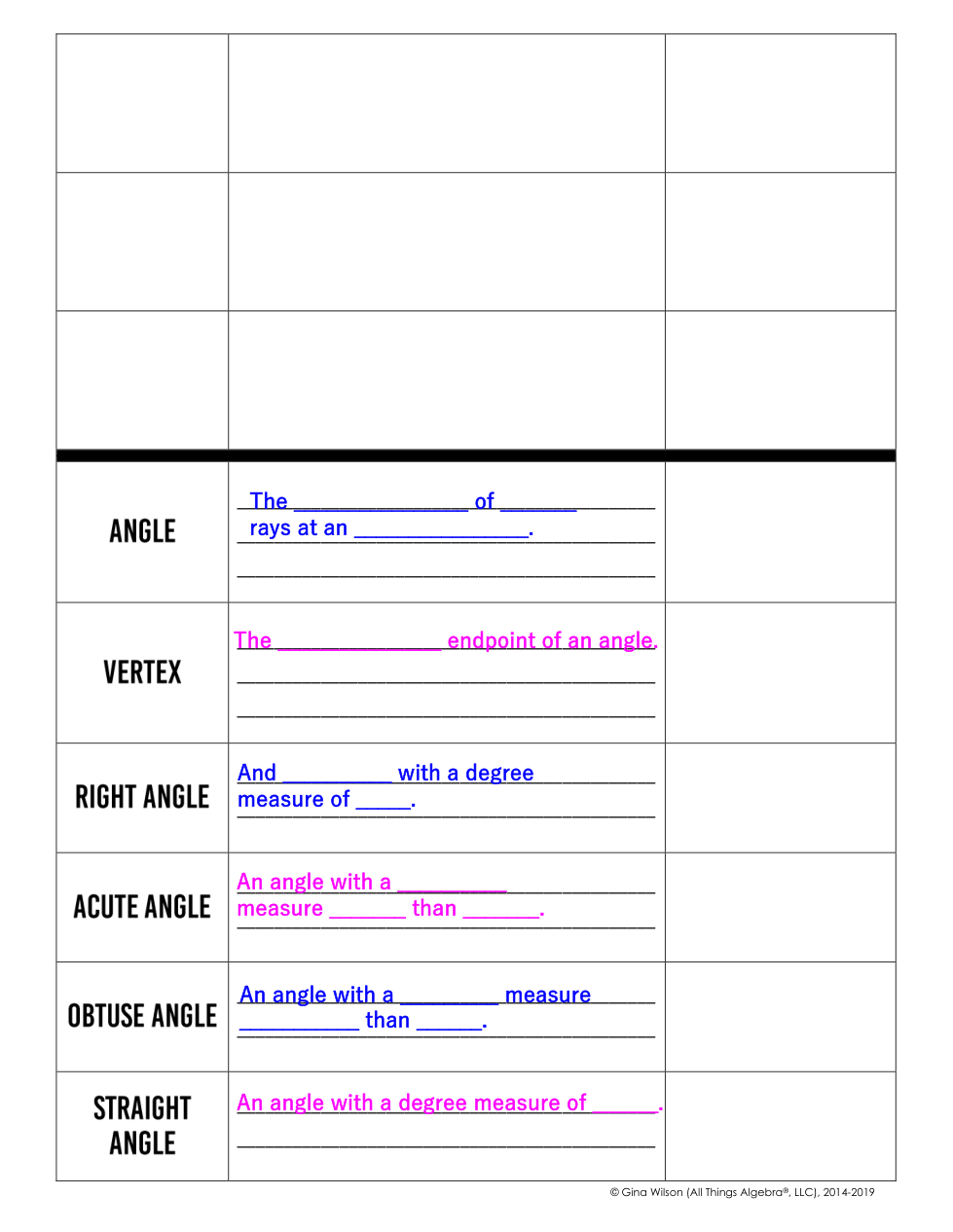 Fill in the missing definitions, then complete the example or visual.
