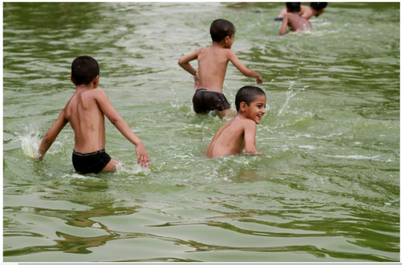 Where are the children swimming?