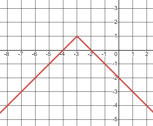 Given the parent function f(x)=|x|, write the equation of the transformed function shown below in the form g(x)=a|x-h|+k