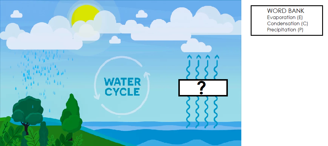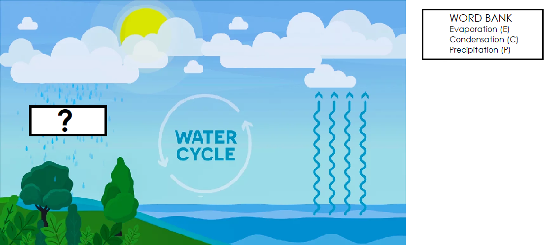 Sequence the steps of the water cycle. Write 1, 2, and 3 under the correct pictures.