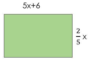 A rectangle has a length of (5x + 6) centimeters and a width of 2/5x centimeters.