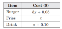 George saw this sign at Benny’s Burgers. If he bought one of each item and spent $7.50, how much did each item cost?
