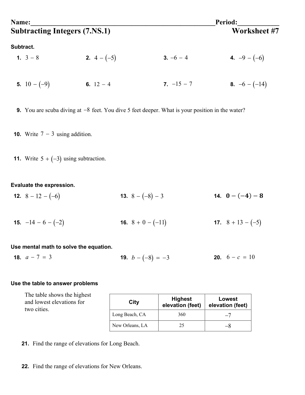 You are scuba diving at -8 feet. You dive 5 feet deeper. What is your position in the water? (Write your answer as an integer.)