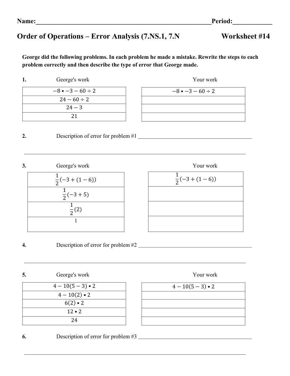 734LRIS WS#14 (Gold) Order of Operations - Error Analysis