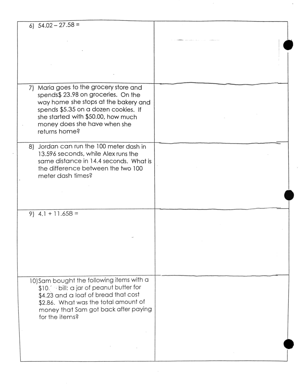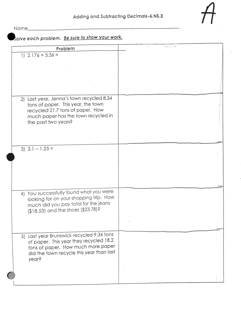 B- Adding and Subtracting Decimals