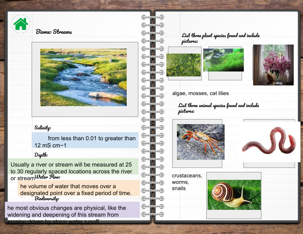 What type of organisms typically thrive in fast-flowing aquatic biomes such as streams?