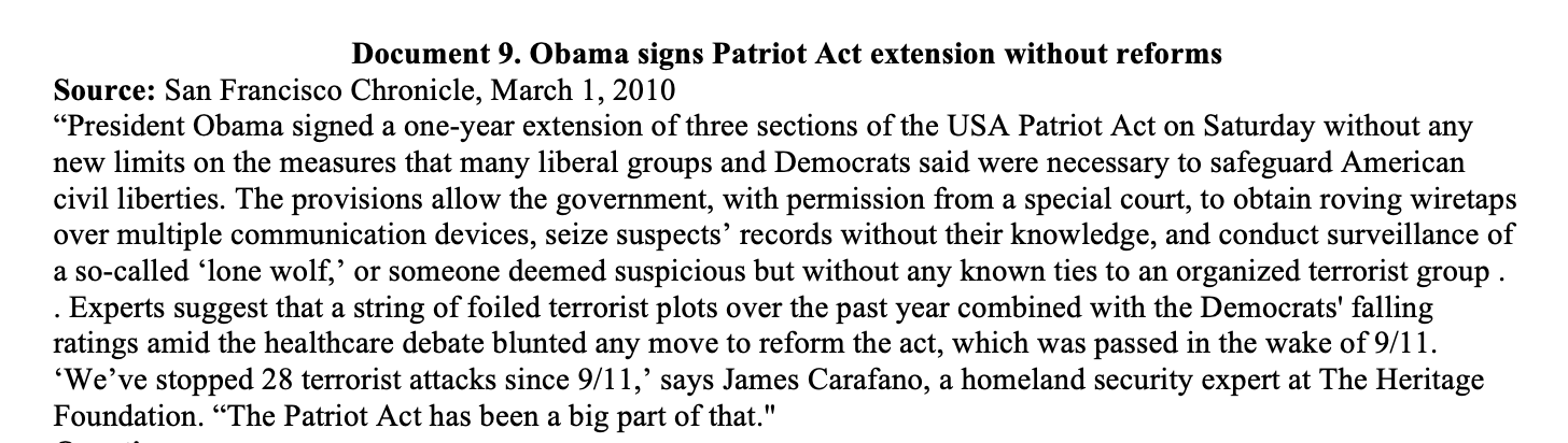 Why, as the experts suggest, was there no move to reform the Patriot Act?