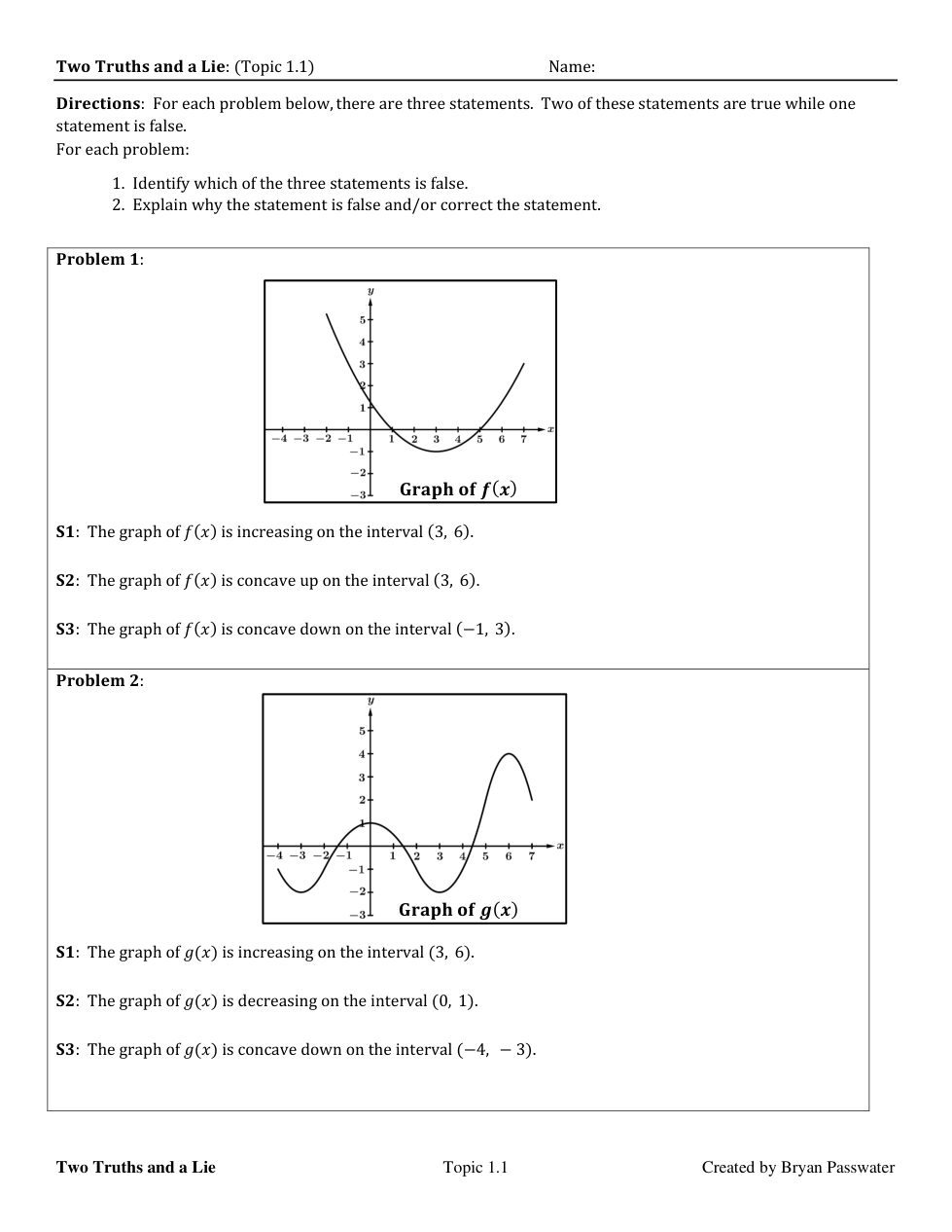 AP Precalc~ 2 truths and a lie(topic 1.1 change in tandem)