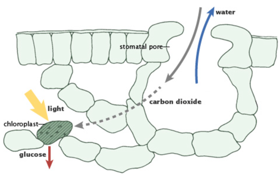 Plants and phytoplankton are the main components of the fast carbon cycle. Phytoplankton (microscopic organisms in the ocean) and plants take carbon dioxide from the atmosphere by absorbing it into their cells. Using energy from the Sun, both plants and plankton combine carbon dioxide (CO2) and water to form sugar (CH2O) and oxygen. The chemical reaction looks like this: