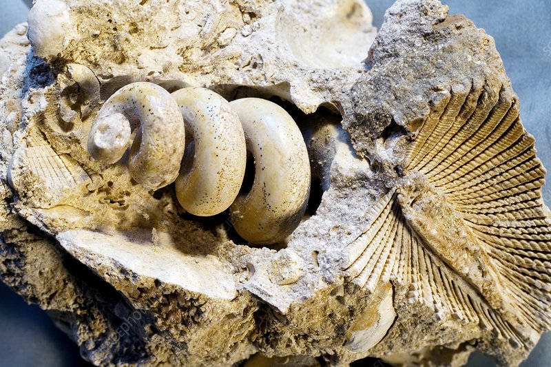 Over time, layers of shells and sediment are cemented together and turn to rock