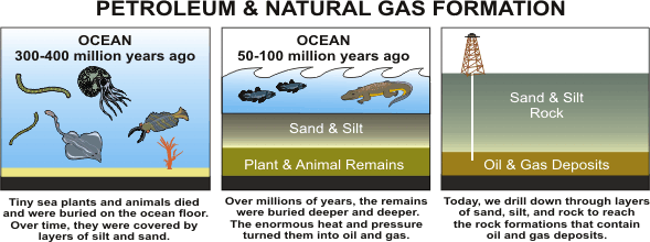 Only 80 percent of carbon-containing rock is currently made this way. The remaining 20 percent contain carbon from living things (organic carbon) that have been embedded in layers of mud. Heat and pressure compress the mud and carbon over millions of years, forming sedimentary rock such as shale. In special cases, when dead plant matter builds up faster than it can decay, layers of organic carbon become oil, coal, or natural gas instead of sedimentary rock like shale.