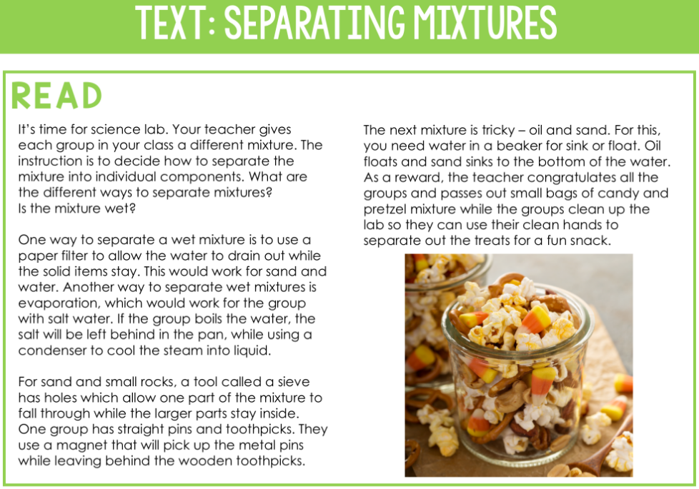 _____________ are combinations of ingredients. Some mixtures are simple and easy to separate. Other mixtures, where ingredients _____________ to form ______________ , require more complex separation techniques. Mixtures are everywhere in our world and sometimes we need to separate them. Understanding the _______________ of the ________________ is the first step to understanding what tools are required to separate them.