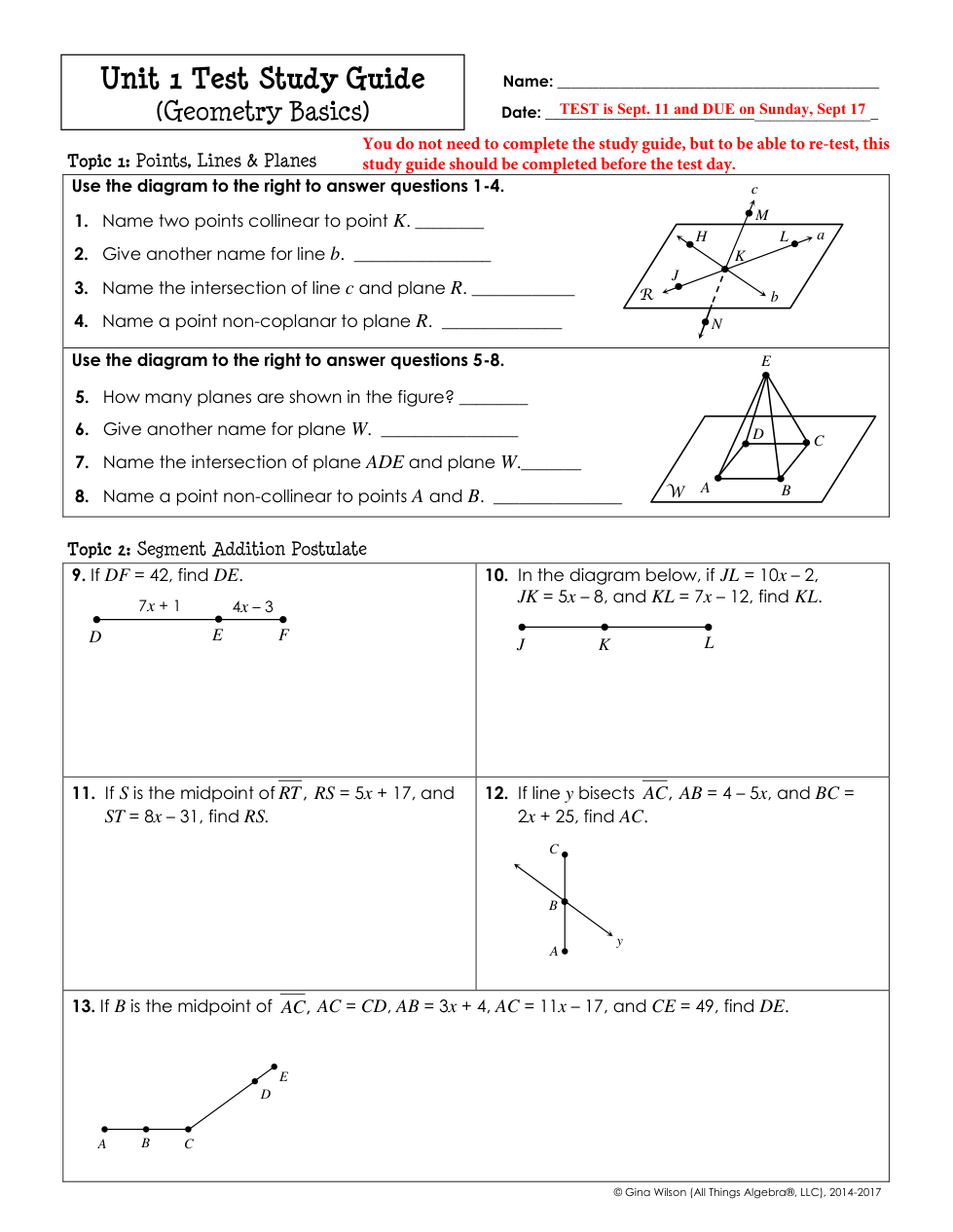 You do not need to complete this study guide to its entirety, but in order for a retest, you should have this completed before taking the Unit 1 test. You may also practice these questions and ask me to check them before the test. Remember to show your work so I can see if you are in the right direction.