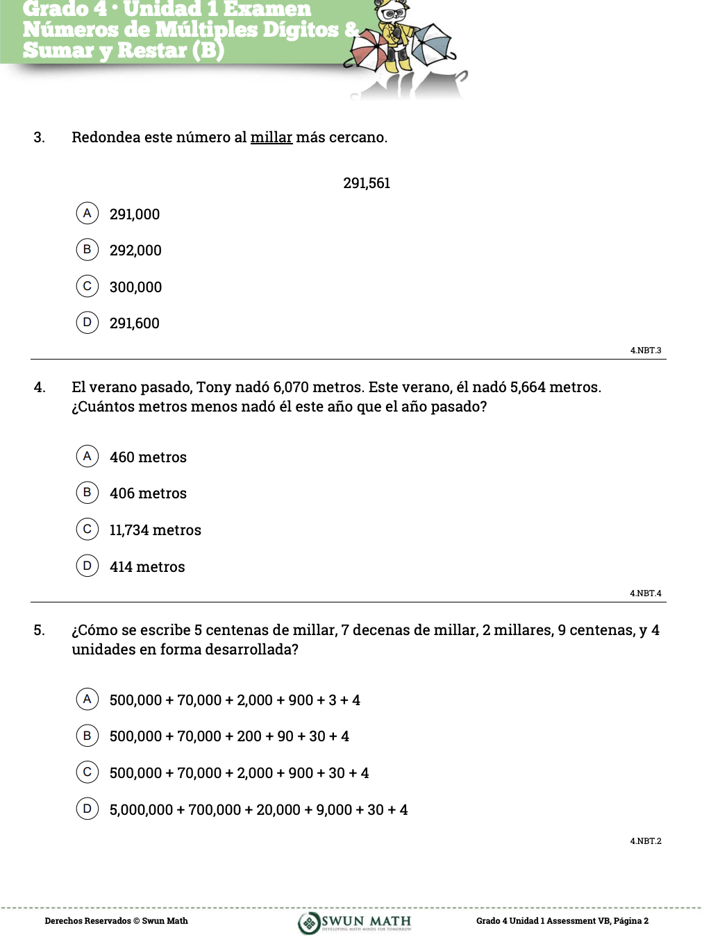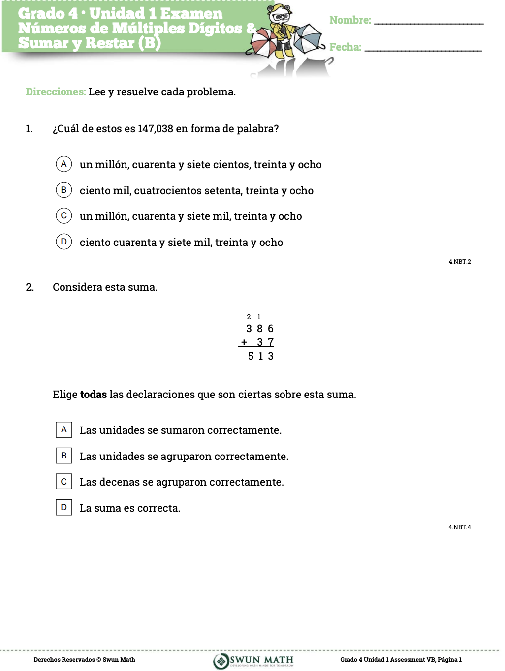 Evaluación SWUN Unidad 1 Números enteros de varios dígitos y suma/resta